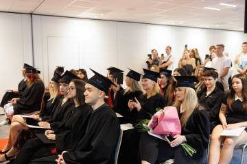 Atmosfera podczas ceremonii była niesamowita. Rodziny, przyjaciele i wykładowcy zgromadzeni na wydarzeniu dzielili się uściskami, gratulacjami i wzruszeniem z powodu kolejnego pokolenia absolwentów, gotowych podjąć wyzwania świata. Wykładowcy wyrazili swoje podziękowania wszystkim absolwentom za ich wysiłek, poświęcenie i pasję w trakcie nauki.