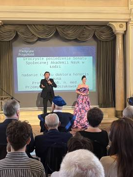 Pierwszy dzień konferencji rozpoczął się wyjątkową ceremonią. 26 czerwca 2025 roku prof. Przemysław Oszukowski, wybitny ekspert i mentor w dziedzinie ginekologii i położnictwa, otrzymał tytuł doktora honoris causa Społecznej Akademii Nauk.