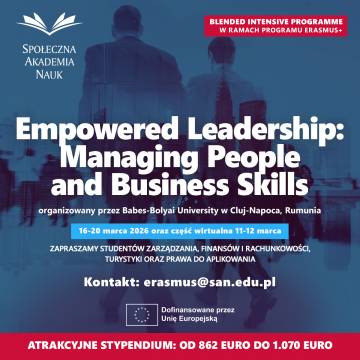 Dział Współpracy z Zagranica i Projektów Międzynarodowych ogłasza rekrutację do udziału w Mieszanym Programie Intensywnym (BIP) Empowered Leadership: Managing People and Business Skills organizowanym w ramach programu Erasmus+ przez Babes-Bolyai University w Cluj-Napoca, Rumunia.